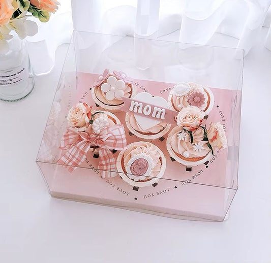 Transparent Pink Heart Shaped Cupcake Box (5pcs/set)