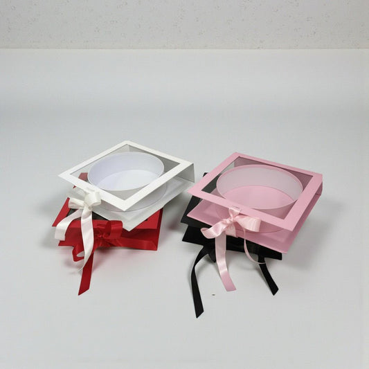 Square Window Circle Insert Flower Gift Box with Ribbon