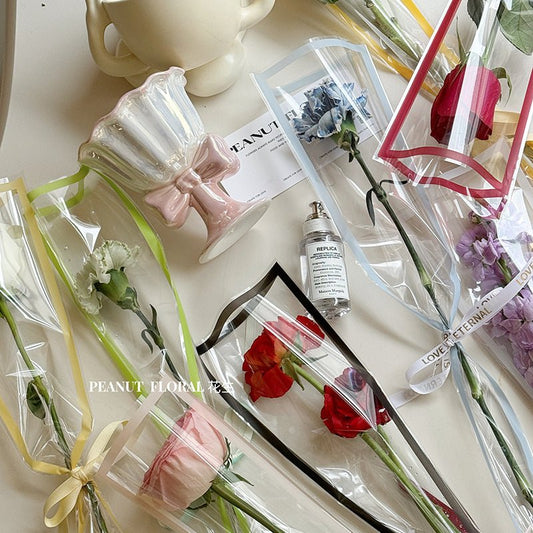 Colored Border Cellophane Flower Sleeve for Single Flower