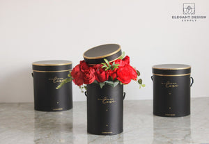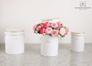 Stunning floral arrangements presented in our elegant flower box, a hat box perfect for flower gifts, and special occasions. Made with quality materials, this quality floral supply is ideal for florists, and unique gift presentations.