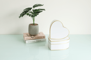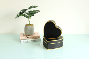 Special occasions deserve a special box. Our heart flower box with gold lines is the perfect way to say "I love you" or "congratulations" to your favorite person. Available in two sizes, and three colors, these boxes will sparkle and delight.
