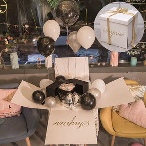 This Large Open Surprise Gift Box is perfect for gender reveals, gifts, or proposals. Its unique design adds an element of surprise to your special moment. Made with high-quality materials, it comes in various colors to suit your specific occasion. Make your surprise even more memorable with this must-have product.