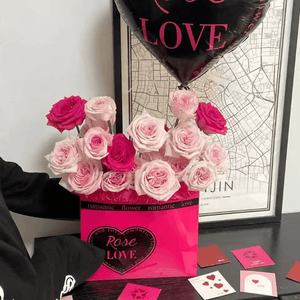 Send your special someone a romantic gift with this flower bag and matching balloon set. Whatever the occasion, the romantic design is sure to make an impression. Enjoy the flower elements combined with the bright, colourful balloons.