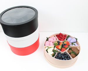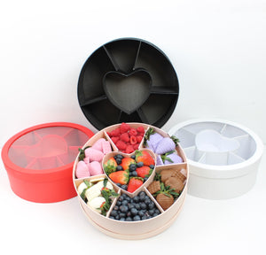 This Round Flower Gift Box makes a perfect gift for any special occasion. Crafted with a heart grid, it features 7 sections to store and protect your items. Ideal for treats, strawberry or other bakery goods, it adds a touch of elegance to any celebration.
