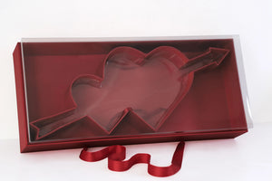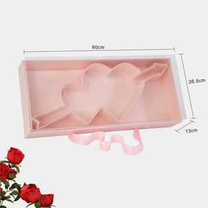 Express your love with our Cupid's Arrow of Love Transparent Flower Gift Box. This luxurious arrangement features a double heart design with an arrow piercing through it, perfect for showcasing a beautiful bouquet or gifting chocolates and strawberries. Available in various colors to suit any occasion.