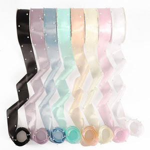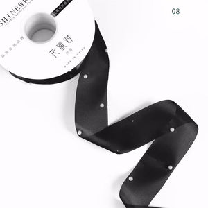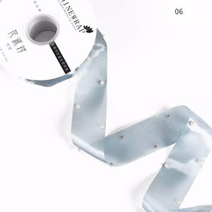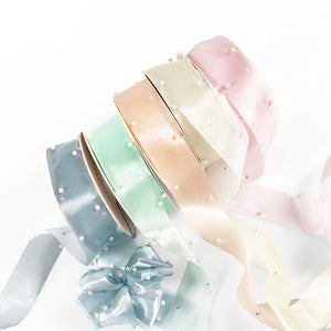 Available in a range of soft and vibrant tones including lavender, black, mint green, pink, and ivory, this ribbon offers both versatility and charm. The lightweight mesh allows for effortless styling while the pearls provide dimension and a high-end feel.