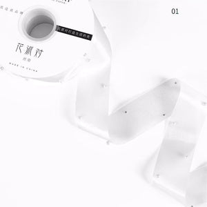 Add a luxurious, elegant touch to your packaging and crafts with our Pearl Beaded Organza Ribbon. This sheer ribbon features evenly spaced faux pearls sewn along the length, creating a sophisticated and delicate effect perfect for weddings, floral arrangements, gift boxes, bouquets, invitations, and other premium presentations.