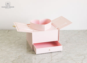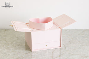 Make a statement with this classic pull-up heart flower box with an elegant drawer. An ideal choice for luxury flower arrangements, gifting, or presenting chocolate strawberries. Expertly crafted with quality materials, this stunning piece is sure to impress.