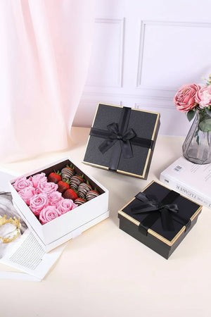 Make every gift feel special with our Elegant Bow-Tied Square Flower Gift Boxes – a luxurious set of 3 rigid boxes in assorted sizes. Crafted with premium textured paper, shimmering gold-edge lids, and a satin ribbon bow, these sturdy boxes bring an elegant touch to weddings, birthdays, Valentine’s Day, anniversaries, and corporate gifting.