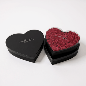 Love Bloom is a statement piece in romantic gift packaging. This luxury heart-shaped box features a crystal-clear lid to beautifully frame floral arrangements, chocolates, or keepsakes. Crafted from premium rigid cardboard, it provides a durable and elegant base for your most delicate designs. A minimalist yet refined script—“Do All Things With Love”—is printed across the lid, making it ideal for Valentine’s Day, weddings, anniversaries, or boutique gifting.
