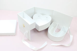This rotating monogram flower gift box showcases your affection with a personalized touch. The box rotates to reveal the words "I Love You" in a monogram design. A unique and charming way to express your love.