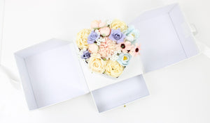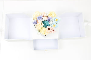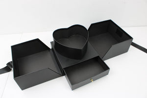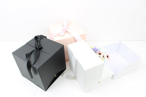 The Surprise Cube Flower Box with Heart Insert is the perfect way to showcase luxury flower, gift, or chocolate strawberry arrangements. With an elegant drawer and ribbon, this box is sure to impress. While supplies last, you can find the box in various colors.