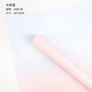 This Two Sides Gradient Flower Wrapping Paper (20pcs/bag) features a beautiful gradient color design on both sides, providing a waterproof solution for wrapping flower bouquets. Its durable material ensures a secure and elegant presentation for any occasion. Perfect for adding a touch of sophistication to your gift-giving.