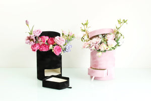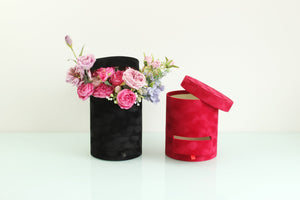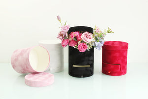 Make a lasting impression with our luxurious velvet round surprise flower box. This stunning round box features a special drawer, perfect for housing your special gifts. Available in a range of beautiful colors, this exquisite box will make any occasion unforgettable.